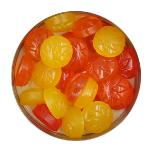 Organic Sugar Cane, Organic Agave Nectar, Gelatine, Vegetable Starch, Natural Flavours and Colours, Citric Acid and Malic Acid, Carnauba Wax, Organic MCT Oil infused with the highest grade of cannabis extract.